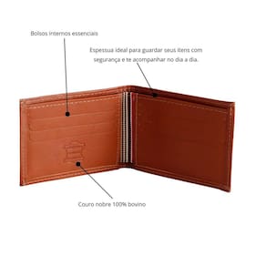 Especificações Técnicas: - Couro Nobre 100% Bovino; - 08 Bolsos internos; - Espaço para cartões de Créditos, Notas e CNH - Forro em Couro Nobre 100% Bovino - Cor Marrom - Compacta e Essencial