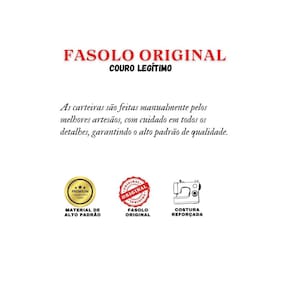 Carteiras fabricadas com couro certificado de alta qualidade, adquiridos dos melhores produtores.