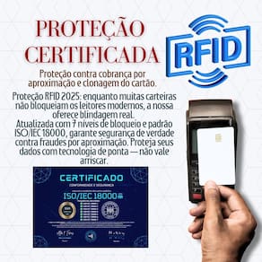Muita gente ainda compra carteira com proteção RFID, mas descobre tarde demais que ela não bloqueia os leitores mais modernos. A nossa, simplesmente funciona.