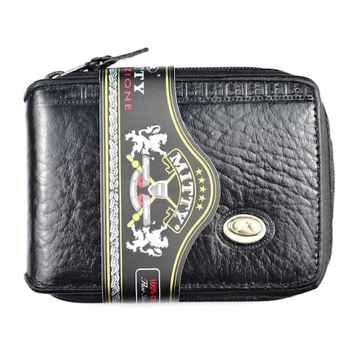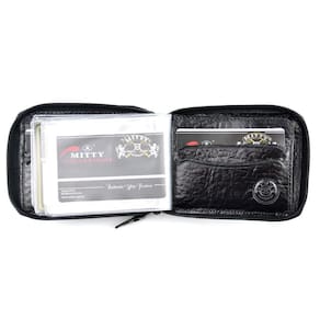 para você que busca estar sempre na moda mas não deixa de lado a qualidade e durabilidade da carteira, conheça a Carteira Mitty Em Couro Com Preto - M1Z A Carteira Mitty confeccionada em couro de alta qualidade, trazendo sofisticação, segurança e economia para seu bolso. Características: - compartimentos para cartões de crédito; - 4 bolsos com janelas plásticas transparentes; - compartimentos para cédulas. Especificações Técnicas: -medidas da Carteira Fechada: 11,5cm x 8,5cm; -material: Couro; -cor: Preto; -cabe RG. Obs.: -O detalhe em relevo na parte posterior da carteira poderá apresentar variações dependo da disponibilidade da coleção. Este detalhe não altera as características principais da carteira e destacam ainda mais a exclusividade de cada peça fabricada à mão. -modelos podem variar cantoneiras ou ranhuras/porta foto ou não Ean: 7898171201066