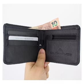 - Compartimento para cédulas - 3 Divisórias para cartões - 2 Divisórias internas podendo ser usadas para guardar documentos - Compartimento com fecho ecler para moedas - 1 Divisória na parte traseira para cartões