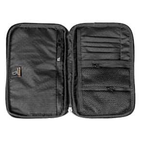Carteira Trip Wallet Curtlo A Trip Wallet da Curtlo é uma carteira de mão com tamanho ideal para acomodar cartões, dinheiro, passaporte, boarding pass, vauchers, canetas e outros acessórios que precisam estar sempre à mão em uma viagem. De uma forma organizada ela é excelente suas viagens e mochilões. A alça de mão traz praticidade, permitindo pendurar a carteira no antebraço e ficar com as mãos livres para segurar o restante da bagagem. Especificações: - Carteira de mão confeccionada em Nylon Rip Stop 95D resistente a água - Abertura total por zíper invertido - Bolso externo de fácil acesso para passaporte ou documentos - Amplo bolso interno com zíper e dois telados de fácil visualização dos objetos - Divisões para cartões, passaportes e valores - Elástico central para fixação de uma caneta - Estruturada com EVA 2mm - Puxador do zíper com etiqueta personalizada - Alça de mão. - Tamanho 22x14x2,5 cm (fechada) / 22x30 cm (aberta) - Peso: 94g - Tecido Velox Rip Stop 095D - 100% poliamida