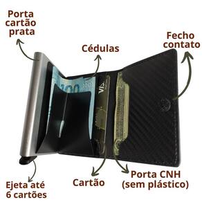 Carteiras Masculina Slim Antifurto Rfid Cabe Cnh C Proteção COR: Prata Fibra de Carbono
