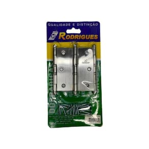 A Cartela de Dobradiças com 3 unidades - 3.1/2X3 - MD 5296 - Aço Cromo Acetinado - Metalúrgica Rodrigues é o conjunto ideal de dobradiças para portas médias. Feitas em aço, essas dobradiças possuem cantos vivos e seu acabamento é em Aço Cromo Acetinado.