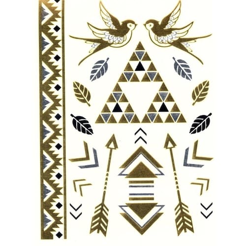Cartela Tatuagem Fake Temporária Pássaros Pirâmide Tatuagem fake Temporária Unissex Não toxico Decida onde você deseja aplicar a tatuagem, certifique-se de que sua pele esteja limpa, livre de óleo e seca. Corte a tatuagem. Remova a película transparente e fixe a sua tatuagem na pele, molhe o papel com uma toalha úmida ou esponja e espere 30 segundos. Remova cuidadosamente o papel para verificar se ele foi transferido. Caso contra rio, pressione um pouco mais. Certifique-se de não torcer ou esticar a pele até que a tatuagem tenha tempo de fixar. A tatuagem só pode ser aplicada na pele Não, a tatuagem pode ser Utilizado em outras superfícies como telefones, vidro, metais, cerâmicas e etc. IMAGENS MERAMENTE ILUSTRATIVAS Marca: Não Informado Ean: 7889350032120
