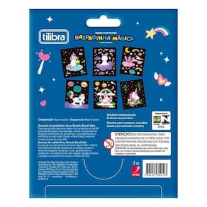 A raspadinha mágica oferece uma maneira curiosa e divertida de pintar, incentivando a coordenação motora, a percepção visual e a criatividade. Este produto, com temática de unicórnio, é indicado para crianças a partir de 3 anos. São 6 cartelas pretas, no formato 148x210mm, que ao serem raspadas com o palito de bambu incluso, revelam cores vibrantes. Produto certificado inmetro brinquedos/segurança - atenção: imagem meramente ilustrativa. Pode ocorrer mudanças no tom da cor para o produto real ou mudanças na embalagem sem aviso prévio por parte do fornecedor/fabricante.