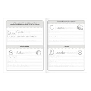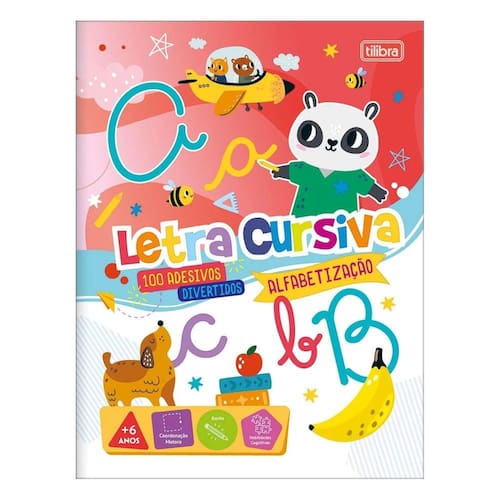 A Cartilha de Atividades de Alfabetização - Letra Cursiva Académie possui 16 páginas, com atividades voltadas para a prática da escrita, especificamente da Letra Cursiva. Possui cartela adesiva com ícones relacionados às atividades e adesivos para que responsáveis e professores consigam estimular o desempenho da criança.
