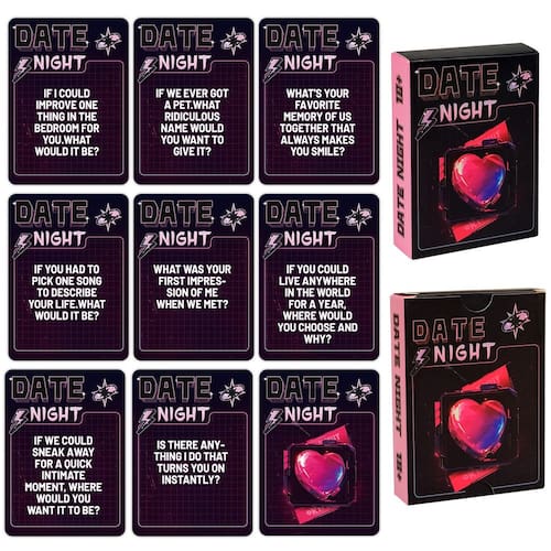 Material: papel Cor: preto Tamanho do pacote: 9 × 7 × 2 cm Peso do pacote: 0,075 kg Lista de embalagem: 1 x baralho de cartas de jogo para casais (50 cartas) Jogo divertido de conversa para encontros noturnos — Este baralho inclui 50 cartões de perguntas envolventes projetados para provocar conversas e risadas significativas, ajudando casais a fortalecer sua conexão emocional. Aprofunde seu relacionamento — Cada cartão incentiva a comunicação aberta por meio de perguntas divertidas e ponderadas sobre memórias, sonhos e sentimentos, ajudando os casais a aprenderem mais um sobre o outro. Perfeito para noites românticas — Ideal para encontros noturnos, aniversários, férias ou noites aconchegantes juntos, criando momentos memoráveis e fortalecendo laços por meio de interações lúdicas. Jogabilidade fácil e envolvente — Basta escolher uma carta e responder à pergunta juntos. Não são necessárias regras complicadas, tornando-o perfeito para casais de todas as fases do relacionamento. Ótimo presente para casais — Uma ideia de presente atenciosa para o Dia dos Namorados, casamentos, aniversários ou celebrações de relacionamento, oferecendo aos casais uma maneira divertida e interativa de se conectar.