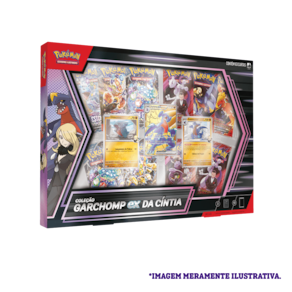 Cíntia, a Campeã da região de Sinnoh, é uma das Treinadoras de Pokémon mais fortesdo mundo, e sua Garchomp tem sido sua fiel companheira desde o começo! Descubra o poder desta amizade com esta coleção que traz uma carta holográfica promocionalde Garchomp ex da Cíntia, cujos ataques causam muito dano e ajudam você a comprarcartas. Você também encontrará cartas holográficas de Gible da Cíntia e Gabite da Cíntiae muitos outros Pokémon dentro dos pacotes de booster.