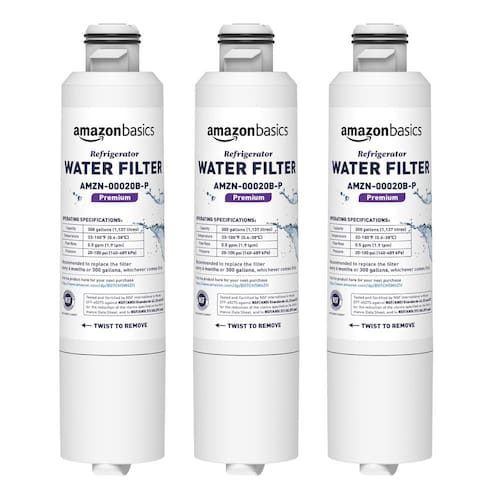 Filtragem de águaAmazon Basics Cartucho de filtro de água para geladeira Samsung DA29-00020B de substituição - Pacote com 3, filtragem premium, fácil de instalar