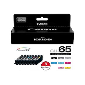 Canon CLI-65 Pacote de oito cores - Dimensões da embalagem: 16,5 cm (C) x 6,3 cm (L) x 14,7 cm (A) - Tipo de produto: Tinta ou toner - Quantidade da embalagem: 1 - País de origem: Japão