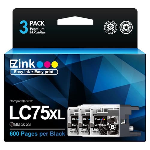 E-Z Ink Cartucho de tinta de substituição compatível com Brother LC-75 XL LC75 XL LC-71 XL LC71XL de alto rendimento compatível com MFC-J6510DW MFC-J6710DW MFC-J6910DW MFC-J280W MFC-J425W (preto, - Nome do produto: cartuchos de tinta de alto rendimento E-Z Ink LC-75 XL LC75 XL LC-71 XL LC71XL para cartuchos de tinta Brother LC75 compatíveis com cartuchos de tinta LC71 para impressora Brothers - Conteúdo da embalagem: 3 cartuchos de tinta pretos x LC 71/75XL, Total 4 LC75 LC71 - Alto rendimento de páginas: até 600 páginas por cartucho de tinta preta LC-75 LC75, com cobertura de 5% em papel A4. - Compatibilidade da impressora: cartuchos de tinta LC71 Use para Brother MFC-J6510DW, MFC-J6710DW, MFC-J6910DW, MFC-J280W, MFC-J425W, MFC-J430W, MFC-J435W, MFC-J5910DW, MFC-J625DW, MFC-J825DW, MFC-J835DW Inkjet Impressora - A tinta de qualidade premium proporciona texto e gráficos nítidos