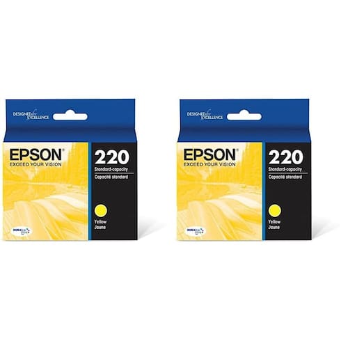 Epson Cartucho amarelo de capacidade padrão 220 DURABrite Ultra Ink (T220420-S) Funciona com Workforce WF-2630, WF-2650, WF-2660, WF-2750, WF-2760, Expression XP-320, XP-420, XP-424 (pacote com 2) - As informações abaixo são apenas por pacote - Manuseio sem preocupações — impressões resistentes a manchas, desbotamento e água - Cartuchos de tinta individuais convenientes