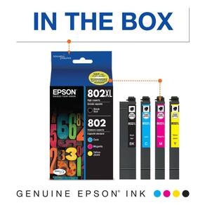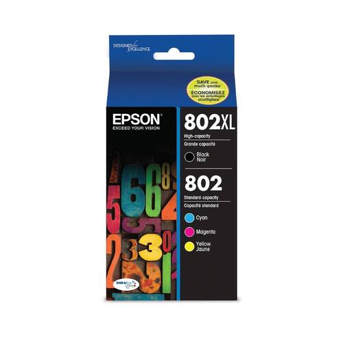 EPSON 802 DURABrite Ultra Ink pacote combo de alta capacidade preto e cor padrão (T802XL-BCS) Funciona com WorkForce Pro WF-4720, WF-4730, WF-4734, WF-4740 - Manuseio sem preocupações – impressões resistentes a manchas, desbotamento e água - Cartuchos de tinta individuais convenientes - Epson - All-in-One Workforce Pro WF-4720, WF-4730, WF-4734, WF-4740