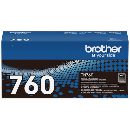 Brother Cartucho de toner preto genuíno TN760 de alto rendimento, (para uso com impressoras MFC-L2710DW MFC-L2750DW HL-L2350DW HL-L2370DW HL-L2395DW HL-L2390DW DCP-L2550DW) - Brother Cartucho genuíno: Brother TN 760 é um cartucho Brother genuíno: que produz impressões a laser mono em alta qualidade em que você pode confiar - Rende até 3.000 páginas: Este cartucho de toner preto de alto rendimento de substituição pode imprimir aproximadamente 3.000 páginas (1) - Integração perfeita: Este cartucho de toner preto de substituição profissional cria pretos ricos e é projetado para funcionar em uníssono perfeito com sua impressora Brother laser - Cartucho de reposição de painel da Amazon: após a ativação com sua impressora Brother elegível para Dash, os cartuchos de substituição TN 760 podem ser pedidos automaticamente através do Amazon Dash Replenishment e enviados diretamente para sua porta - Para uso com impressoras Brother laser e tudo em um DCP L2550DW, HL L2350DW, HL L2370DW, HL L2370DWXL, HL L2390DW, HL L2395DW, MFC L2710DW, MFC L2750DW, MFC L2750DWXL