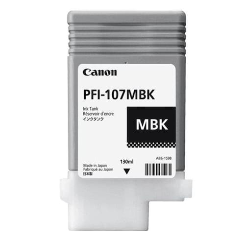 Cartucho Canon PFI 107 MBK cor Matte Black para os modelos de Plotter imagePrograf iPF680, iPF685, iPF780 e iPF785. O PFI 107 MBK é um cartucho desenvolvida para maximizar a adesão de tinta na impressão.