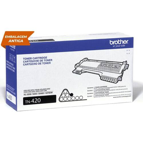 Cartucho Toner TN-420 preto com durabilidade aproximada de 1.200 impressões (rendimento de acordo com a ISO/IEC 19752). Para os modelos 2240 (HL-2240), 2270 (HL-2270DW), 7065 (DCP-7065DN), 7360 (MFC-7360N), 7460 (MFC-7460DN).
