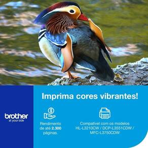 Utilizado nos equipamentos: HLL3210CW, DCPL3551CDW, MFCL3750CDW. Possui rendimento médio de 2.300 páginas, considerando 5% de cobertura no papel A4. Marca: Brother