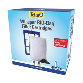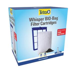 Tetra Cartuchos de filtro descartáveis Whisper Bio-Bag, 8 unidades, para aquários, grandes, desmontados - Filtro de carbono de substituição desmontado: mantém a água do aquário cristalina – remove odores e descoloração. - CAPTA DEBRIS: A malha densa e dupla face filtra detritos e resíduos de peixe. - Compatível com filtros de água Tetra Whisper: codificado por cores para tornar simples lembrar qual tamanho de cartucho de substituição comprar. - Conveniente: fácil de montar e fácil de substituir. - UTILIZAÇÃO: mude mensalmente ou mais cedo, se necessário.