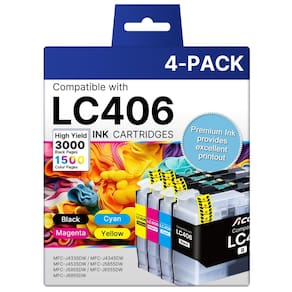 pacote com 4) - Pacote incluído: pacote com 4 cartuchos de tinta lc406 para impressora Brother compatível com impressoras Brother Cartuchos de tinta c406xl para impressora Brother, incluindo 1x lc406 preto, 1x lc406 ciano, 1x lc406 magenta, 1x lc406 amarelo - Impressora compatível: os cartuchos de tinta Acaves lc406xl para a impressora Brother funcionam para Brother mfc-j4335dw mfc-j4345dw mfc-j4535dw mfc-j4535dw j5855dw mfc-j5955dw mfc-j6555dw mfc- j6955dw