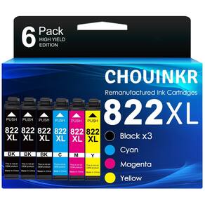 822xl - Conteúdo da embalagem: cartuchos de tinta de substituição CHOUINKR 822XL 822 XL T822XL pacote combo de cartuchos de tinta - Impressoras compatíveis: Funciona com impressora WF-3820 WF-4820 WF-4830 WF-4834 WF-4833 WF-3823 - Rendimento de página alto: 1100 páginas por cartucho de tinta preta 822XL / 1100 páginas por cartucho de tinta colorida 822XL com cobertura de 5% - Conteúdo da embalagem: 3 x 822XL preto, 1 x 822XL ciano, 1 x magenta 822XL, 1 x 822XL amarelo, 1 x manual do usuário (sem cartuchos Autêntico) - Observação: Este não é um pacote combo de cartuchos de tinta 822xl preto e colorido Autêntico