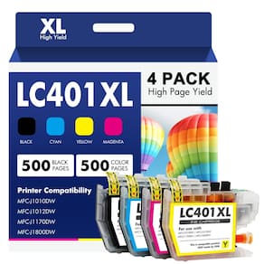 Cartuchos de tinta LC401 LC401XL MFC-J1010DW para impressora Brother LC 401 401XL para MFC-J1010DW MFC-J1170DW MFC-J1012DW MFC-J1800DW MFC J1010DW - 4 pacotes de alto rendimento preto ciano magenta amarelo - Conteúdo do pacote: Isprintime 4 pacotes LCC401XL Cartuchos de tinta 401 LC401XL para impressora Brother preto ciano magenta amarelo - Impressoras compatíveis: MFC-J1010DW MFC-J1012DW MFC-J1170DW MFC-J1800DW MFC-J1010 MFC-J1012 MFC-J1170 MFC-J1800 - Alto rendimento: alto rendimento de até 500 páginas por LCC Cartuchos de tinta preta e colorida 401XL (5% de cobertura e tamanho de papel A4)