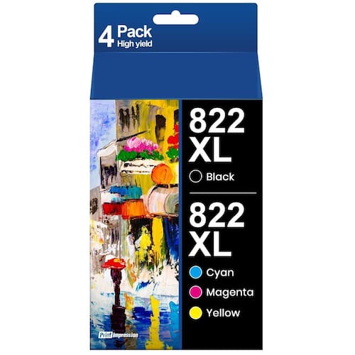 - Substituição remanufaturada 822xl tinta de impressora epson: para cartuchos de tinta epson 822xl pacote combo inclui 1*822xl preto, 1*822xl ciano, 1*822xl magenta, 1*822xl amarelo e 1*guia de usuário abrangente para garantir a instalação sem preocupações