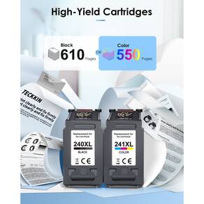 Pacote combo de substituição 240XL 241XL para impressora Canon 240 241, PG-240XL CL-241XL 240 XL cartuchos de tinta preta 241XL cartuchos de tinta colorida para PIXMA MG3620 MG3600 MG3520 MG3222 TS5120 TS5100 MX477 2 impressoras - Item do produto: cartuchos de tinta de substituição 240xl 241xl para pacote combo Canon 240xl 241xl. Os cartuchos de tinta preta PG-240 produzem texto de documento preto nítido e os cartuchos de tinta colorida CL-241 produzem imagens coloridas precisas - Lista do pacote: 1 x cartucho de tinta preta PG-240XL, 1 x cartucho de tinta colorida CL-241XL, 1 x guia do usuário - Compatibilidade da impressora: Compatível com Canon Pixma MG3620 MG3600 MG2120 MG2220 MG3120 MG3122 MG3220 MG3222 MG3520 MG3522 MG4120 MG4220 MX372 MX392 MX4322 MX439 Impressora MX452 MX459 MX472 MX479 TS5100 TS5120 - Maior rendimento de páginas: 630 páginas para cartucho de tinta preta canon 240xg, 560 páginas para cartucho de tinta colorida canon 241xg. (A 5% de cobertura) - Qualidade de impressão confiável: a tinta 240XL 241XL para canon 240 e 241 está equipada com os chips inteligentes de atualização mais recente, que são submetidos aos mais altos e mais rigorosos testes de qualidade para garantir que imprima texto nítido e imagens de cores vibrantes, proporcionando uma experiência diferente - Dicas: Se você tiver alguma dúvida sobre a tinta 240 241, pela Amazon primeiro, fornecemos 12 meses de garantia e nosso atendimento ao cliente pós-venda lhe dará uma solução satisfatória