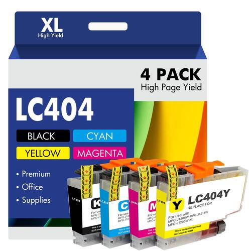 LC404XL LC404 Cartuchos de tinta para impressora Brother 404XL LC 404 XL para MFC-J1205W MFC-J1215W MFC J1205W J1215W - Pacote com 4 unidades de alto rendimento preto, ciano, magenta amarelo - Modelo do produto: lc404xl lc404 cartuchos de tinta para impressora brother pacote com 4 preto ciano magenta amarelo - Impressoras compatíveis: Impressora MFC-J1205W, MFC-J1215W, MFC-J1205W XL - Alto rendimento de páginas: Alto rendimento de até 750 páginas por cartucho de tinta (5% de cobertura *tamanho de papel A4) - Conteúdo da embalagem: 1 x Preto LC404XL BK, 1 x Ciano LC404XL C, 1 x Magenta LC404XL M, 1 x Amarelo LC404XL Y, 1 x Guia do Usuário (Cartuchos NÃO Autêntico) - Observação: Este não é um pacote combo de cartuchos de tinta Autêntico BK/C/M/Y LC404XL LC404