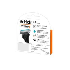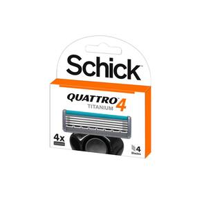 - Os refis de cartuchos de titânio da Schick Quattro contêm 4 lâminas com novo sistema de revestimento de lâmina de titânio.