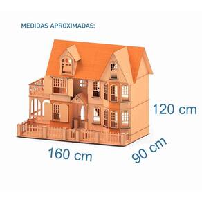 Características: Mansão Stefannie: Tamanho total montado: 1,60m x 90 cm x 1,20 m largura x comprimento x altura Peso: 30 kg aprox Sem pintura mdf natural Imagens ilustrativas, não acompanha móveis. Não indicado a exposiçao a Luz intensa e umidade. Uso em ambientes internos. Produto não perecível.