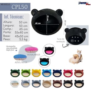 MEDIDAS TÉCNICAS: Altura: 50 cm Largura: 50 cm Comprimento: 65 cm Base: 43x50 cm; Peso: 3,5 kg Medida da entrada porta : 30x40 Cor: Branco Almofada Dupla Face: Azul/Bege