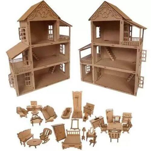 Casa casinha de boneca tipo com kit 27 mini moveis em madeira MDF Cru Casinha De Boneca estilo BonecaÉ uma linda casa de bonecas, com 3 níveis, lindamente trabalhada e detalhada.Essa casinha de bonecas proporcionará horas de brincadeiras, imaginação e diversão.Este conjunto será um presente maravilhoso para a sua Criança, porque no decorrer da Brincadeira a criança desenvolve as coordenações motoras e criatividade.Fácil de montar.Fabricado em madeira MDF 3mm com cortes a laser.Idade mínima 3 anos.Produtos enviados desmontados, para não danificar durante o transporte.Casinha mede 60 cm de Altura X 44 cm Comprimento x 20 cm largura.Kit Contem: 1 Casinha de MDF Cru Com 27 mini moveis de MDF CruProduto possui INMETRO