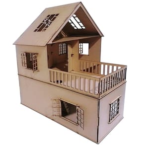 Kit contém: 1 casa de bonecas de madeira tipo MDF Crú com Varanda