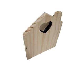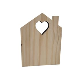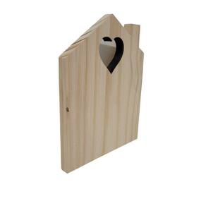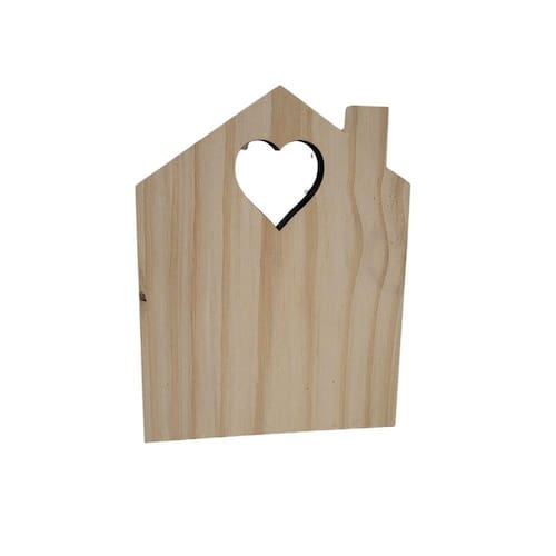 Placa ou enfeite Casinha com chaminé e coração vasado em Pinus;