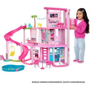 As crianças podem dar a melhor festa na piscina com a Casa dos Sonhos da Barbie! Esta casa de bonecas de luxo tem o escorregador mais alto da linha Barbie Casa dos Sonhos, com design em espiral de três andares para uma diversão sem fim ao sol. Ela inspira brincadeiras em 360 graus com uma área ampla e espaçosa, três andares e 10 áreas internas e externas. O conjunto também traz mais toques para animais de estimação do que nunca, incluindo um escorregador para bichinhos e uma piscina onde amigos peludos podem brincar com a Barbie! Além disso, a área extra no último andar é compatível com uma transformação que permite que quatro bonecas façam uma festa do pijama na Casa dos Sonhos. Com mais de 75 acessórios e espaços personalizáveis que duplicam a diversão, é um presente incrível para crianças a partir de 3 anos. É necessário montar. Bonecas não incluídas. As cores e as decorações podem variar.