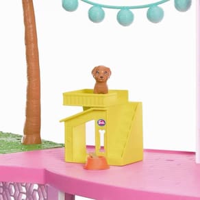 Esta casa de bonecas funciona como um verdadeiro palácio para os animais de estimação e inclui até uma figura de cachorrinho! Os amigos peludos vão se divertir com o elevador e o escorregador, além da piscina, caminha, porta para cachorro e casinha.