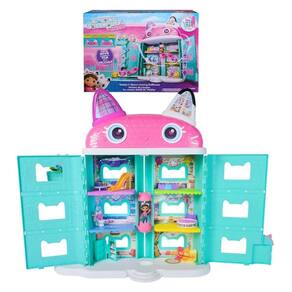 A Casa de Bonecas do filme Gabbys Dollhouse the Movie traz toda a magia do cinema para a brincadeira. Com mais de 60 cm de altura, elevador funcional e Caixas Surpresa cheias de encantos, cada detalhe convida a imaginar novas histórias. No telhado, os olhos do gato mudam de expressão, acompanhando cada momento da diversão. A brincadeira acontece em 360°, com diversos ambientes para explorar. Acompanha 1 figura da Gabby, 7 móveis, 3 acessórios, 2 Caixas Surpresa, adesivos e 1 manual de instruções.
