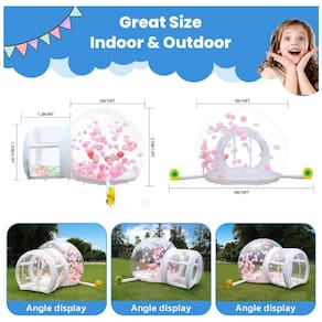 A Casa de Bolha Inflável é um amplo playground externo que pode acomodar várias crianças ou adultos, proporcionando um ambiente divertido e seguro para atividades ao ar livre. O material completamente transparente é ideal para uso externo, como playgrounds, quintais e gramados. Feita com material de alta qualidade, a tenda de bolha inflável é durável e resistente. Fácil de instalar, basta inflar com uma bomba de ar e soprador. A atmosfera mágica é garantida com 100 balões dentro da bolha, criando um cenário perfeito para casamentos, festas de aniversário e eventos. Tanto crianças quanto adultos podem se divertir!