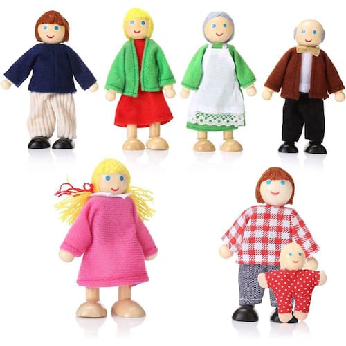 Tamanho certo para brincar: As pessoas da família de madeira contêm avós, mãe, pai, filho, filha e um bebê. Os personagens têm cerca de 2,4 polegadas de altura a 4,6 polegadas de altura, do tamanho certo para pré-escolares e crianças para brincar. Também como um ideal dolls casa acessórios para decorar a casa de bonecas. Esta é uma casa de bonecas de família completa que permitem muito espaço para a imaginação.