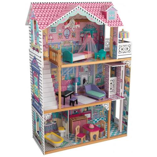 Nossa brilhante e alegre casa de bonecas KidKraft Annabelle tem quase 1,20 m de altura e oferece três níveis de diversão, quatro quartos espaçosos e uma varanda. Um elevador deslizante leva as bonecas até o segundo andar e o pacote de móveis de 17 peças incluído cria infinitas possibilidades de decoração e brincadeiras para bonecas da moda de 12 polegadas. 3 níveis, 4 quartos e uma varanda Elevador deslizante com alça para facilitar a movimentação Detalhes rolantes adicionam um toque dramático Feito de madeira para uma longa duração de jogo Inclui um conjunto de móveis de 17 peças Adapta se a todas as bonecas de moda de até 30 centímetros, incluindo Barbie, LOL Surprise, Disney Princess, etc. design de elevador deslizante com uma treliça elaborada em forma de coração Inclui 16 móveis coloridos e um lustre suspenso Janelas amplas permitem que as crianças vejam suas bonecas de diferentes ângulos Construção inteligente, resistente e feita de madeira acomoda bonecas do tamanho da Barbie Marca: Não Informado