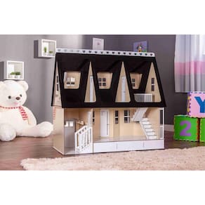 Confeccionada em mdf de 3 mm, a casinha de bonecas é composta por diversas peças, as quais se encaixam sutilmente devido a precisão de corte dos mesmos. Não acompanha móveis.