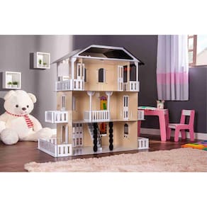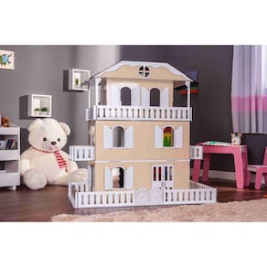 Casa de bonecas escala barbie estilo suzan Crem Confeccionada em mdf de 3 mm,a casinha de bonecas é composta por diversas peças,as quais se encaixam sutilmente devido a precisão de corte dos mesmos. Não acompanha móveis.