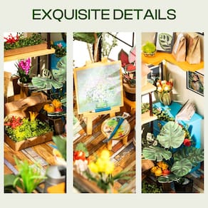 Obrigado por escolher os produtos da ROBOTIME e esperamos que traga uma ótima experiência. Características principais: 1) Tamanho do produto: 195 x 175 x 175 mm; 2) Peso do produto: 330 g; 3) Tamanho da embalagem: 319 x 207 x 50 mm; 4) Peso da embalagem: 700 g; 5) Tempo de montagem: aproximadamente 20 horas; 6) Idade: 6+; 7) Luz LED; 8) Seguro e não tóxico; 9) Decoração bonita. Conteúdo da embalagem: 1) Todos os móveis e objetos mostrados nas imagens. (Precisa fazer você mesmo); 2) Luzes LED; 3) Pigmento; 4) Um frasco de cola; 5) Escova, pinças e algumas outras pequenas ferramentas; 6) Instruções de montagem (sem garantia de versão em português). Observações: 1. Prepare as pilhas porque não é permitido enviar por via aérea; 2. A casa de bonecas DIY precisa que você a monte sozinho, o interior da embalagem tem vários sacos de coisas, você precisa colar o material. Esta cabine sem mobília levará aproximadamente 20 horas para montar e terminar. Instruções passo a passo com desenhos detalhados estão incluídas. Este kit requintado é adequado para colecionadores. Como inclui peças pequenas, não é recomendado para crianças menores de 3 anos. Este kit é de alta qualidade, usamos tudo nele, não é necessário comprar mais nada para construir (bateria esperada). Instruções muito fáceis de entender. Você pode configurar seus quartos de várias maneiras diferentes. Tornou-se um hobby maravilhoso para adultos trabalharem. A ROBOTIME sempre insistiu em fornecer produtos e serviços de alto padrão há mais de 10 anos. Se você tiver alguma dúvida, em tempo hábil e nós lhe daremos uma solução satisfatória. - ?Mini casa requintada?Nossa casa de bonecas DIY é muito bem feita, usando uma escala em miniatura de cerca de 1:24. Uma ótima réplica de casa verde com luz LED. Coloque-a no escuro, ela iluminará a casa em miniatura. Material seguro, não tóxico, da mais alta qualidade. - ?Kit divertido para construir?Você precisa colar, montar, costurar, moldar, colocar para terminar a mini estufa. Além disso, você pode usar sua imaginação para personalizar alguns acessórios para adicionar decoração. Definitivamente um projeto divertido para trabalhar com a família! - ?Necessidade de montar?Instruções ilustradas em inglês, cada peça é numerada, você só precisa montá-la passo a passo de acordo com as instruções com paciência. Após a conclusão, você terá uma sensação abrangente de realização. - ?Experiência DIY significativa?Alívio do desconforto para adultos. Ilumine a imaginação e uma sensação de admiração em adultos e crianças. É tão bonito e uma ótima maneira de gastar seu tempo quando você está construindo uma casa em miniatura. Sem telas. Poder cerebral diferente. - ?Presente e decoração decentes?Ninguém recusará um presente de casa de fadas! Este kit de casa de bonecas em miniatura é um presente incrível para adultos e adolescentes no Natal, Ano Novo, aniversário, Dia dos Namorados e uma decoração perfeita para casa, escritório, sala de reuniões, cafeteria e livraria.