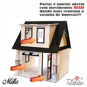 Casa de bonecas modelo milla - daramaUm dos nossos lançamentos de 2022, a casa de bonecas milla, tras um conceito mais compacto para casinhas de escala para bonecas de 30 cm de altura, ideal para pequenos espaços.A casa modelo milla possui dimensão total de 60 cm de comprimentos por 56 centimetros de profundidade, e 70 centimetros de altura, comportando bonecas de até 30 cm de altura como as da linha barbie e similares.Ela é composta por 2 cômodos amplos, sendo ambos de 35 cm de altura. Possui ainda uma varanda na parte frontal com espaçamento de 10 cm, ideal para que sua boneca possa circular tranquilamente na parte interna.As janelas e portas deste modelo são móveis, ou seja, as janelas e as portinhas abrem e fecham, dando mais realismo ao produto.Todo o produto é enviado desmontado, e para sua montagem disponibilizamos um manual ilustrativo. A montagem é feita através de encaixes e colagem precisa seguir o tutorial de montagem sendo um desafio para toda a família a construção desta linda casinha.A casinha milla está sendo comercializada em diversas versões, tanto coloridas, como em mdf natural.Características:Medidas: 60 x 56 x 70 centimetros largura x comprimento x altura Compatibilidade: bonecas de 30cm de altura tipo barbie e similares Obs imagens reais do produto.Obs: nao acompanha móveis,Homologação Inmetro: IP-BRI-0900/2021-16