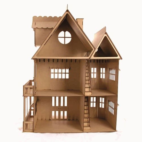 Confeccionada em mdf de 3 mm,a casinha de bonecas é composta por diversas peças,as quais se encaixam sutilmente devido a precisão de corte dos mesmos. Não acompanha móveis.
