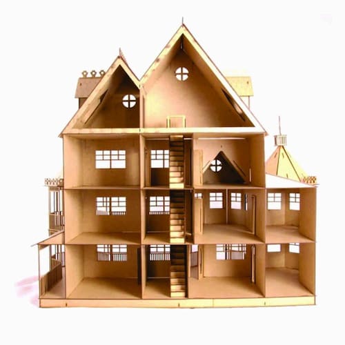 Confeccionada em mdf de 3 mm,a casinha de bonecas é composta por diversas peças,as quais se encaixam sutilmente devido a precisão de corte dos mesmos. Não acompanha móveis.