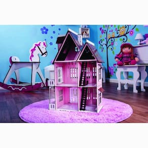 Confeccionada em mdf de 3 mm,a casinha de bonecas é composta por diversas peças,as quais se encaixam sutilmente devido a precisão de corte dos mesmos. Não acompanha móveis.