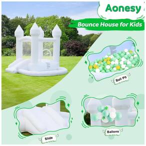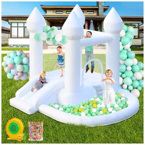Segurança e Durabilidade: Esta casa de pulso inflável é certificada pela segurança e qualidade. Um potente inflador de 370W fornece suporte consistente para as crianças pularem vigorosamente. Cercas de proteção são construídas ao redor da área de pulo para evitar quedas. Você pode confiar em seus filhos com este resistente castelo de diversão enquanto desfruta dos momentos. Fácil de Montar: A casa de pulso pode ser montada ou desinflada em apenas 2 minutos. Basta achatar a casa de pulso, conectar a mangueira de ar ao inflador e ligar, fixando-a ao chão com estacas. Logo estará cheia de risadas de crianças e criará memórias alegres o ano todo. Tamanho Apropriado: Com 283x247x220 cm, esta casa de pulso branca para crianças é adequada tanto para áreas internas, como porões, salas de estar, garagens em dias chuvosos, quanto para áreas externas, como quintais, gramados, parques e praias em dias bons. As crianças podem se divertir no mundo dos pulos a qualquer hora, em qualquer lugar. Escolha Maravilhosa: A casa de pulso para crianças tem uma área de pulo espaçosa. A piscina de bolinhas pode ser preenchida com bolas, água, brinquedos ou areia, dependendo do tipo de diversão que as crianças desejam explorar. Pulos ajudam no desenvolvimento do equilíbrio e na melhoria da saúde física das crianças. Um presente maravilhoso para estimular o potencial das crianças. Artística e Prática: O design elegante desta casa inflável branca certamente será um ponto atrativo em festas de aniversário, reuniões familiares, casamentos ou eventos comerciais. O castelo branco inflável pode ser decorado com balões, laços e flores, tornando-o não apenas uma plataforma de diversão, mas também uma opção de decoração ideal.