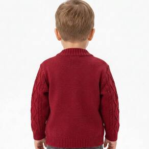 Casaco de Losango Tricô Kids Trança Canelado feito em tecido algodão e acrílico, gola em V, fechamento em botões, manga longa e etiquetas personalizadas.